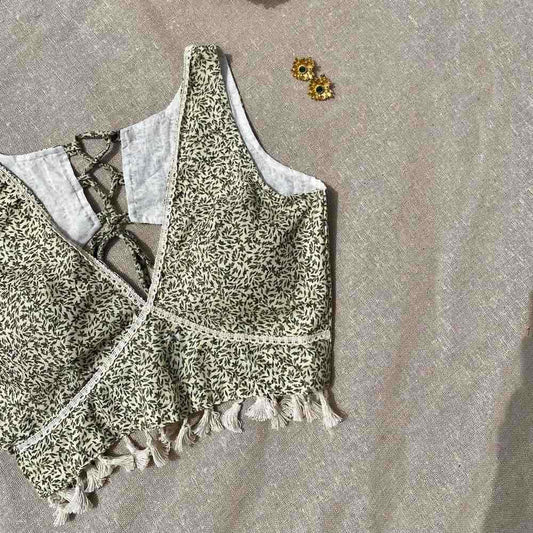 Black Ajrakh Tukki Cotton Blouse - Fal3341