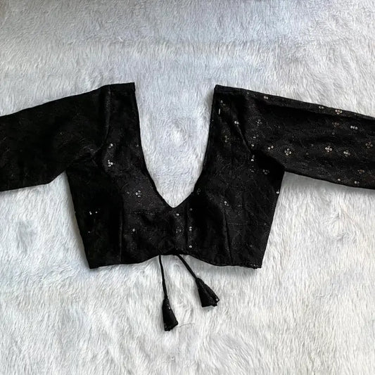 Black Sequin Work Full Sleeves Cotton Blouse - Fal3340