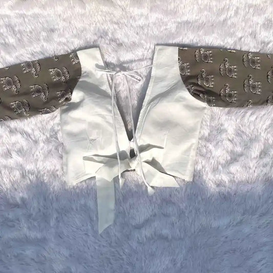 Cream Brown Jaal Deep V Neck Cotton Blouse - Fal3342