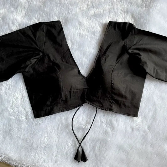 Black Cotton Full Sleeves Criss Cross Piki Blouse - Fal3160
