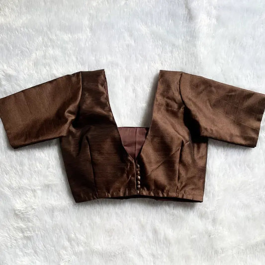 Brown Square Neck Raw Silk Elbow Sleeves Blouse - Fal3123