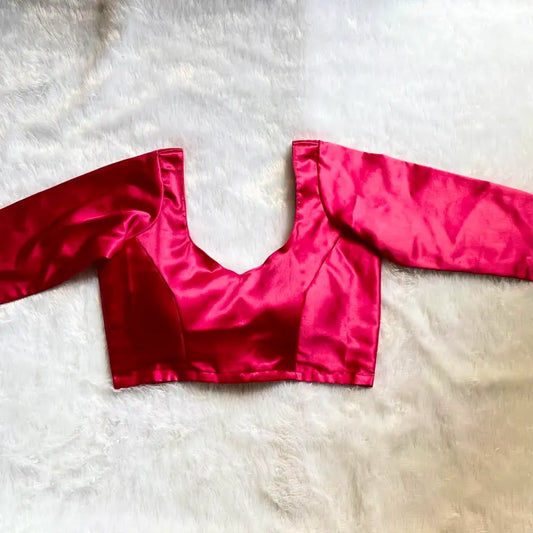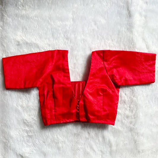 Red Square Neck Raw Silk Elbow Sleeves Blouse - Fal3122
