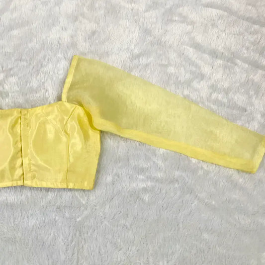 Baby Yellow Puff Organza Sleeves Raw Silk Blouse - Fal3115