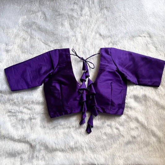 Purple Deep V Neck Heavy Tassel Raw Silk Blouse - Fal3110