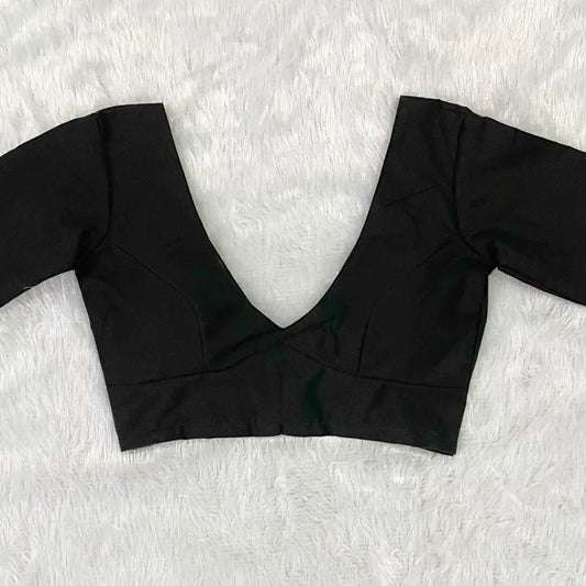 Black Deep V Neck and Back Potli Button Plain Cotton Blouse - Fal3106