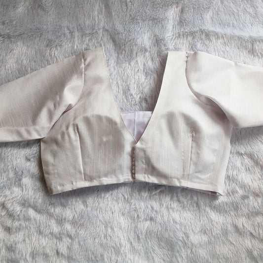 White Square Neck Raw Silk Elbow Sleeves Blouse - Fal3107