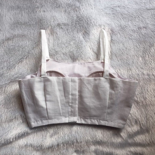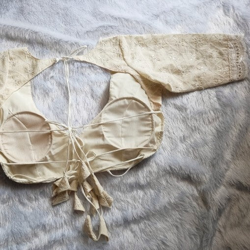 Cream Brown Jaal Deep V Neck Cotton Blouse - Fal3342