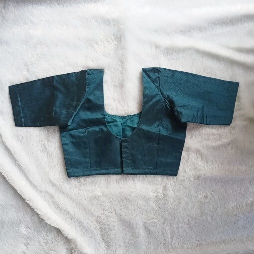 Teal Blue Round Neck Raw Silk Blouse - Fal3086