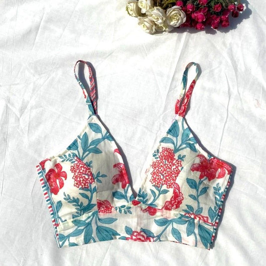 White Pink Zig Zag Floral Pure Mulmul Saree and Blouse