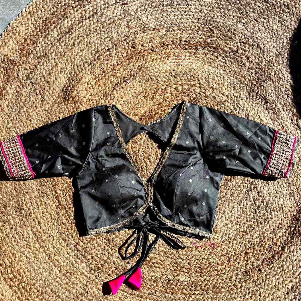 Make a refined statement at weddings and festive gatherings with this Gray Polka Brocade Deep V Neck Blouse. Crafted from premium brocade fabric, it features an elegant polka pattern that adds depth and sophistication to your ethnic look. The deep V neckline enhances the silhouette while maintaining a graceful and classy appeal. Perfect for party wear and wedding occasions, this blouse pairs effortlessly with sarees, lehengas, and skirts. Thoughtfully designed for comfort and versatility, it allows easy movement and long wear, making it a practical yet stylish choice for special celebrations.