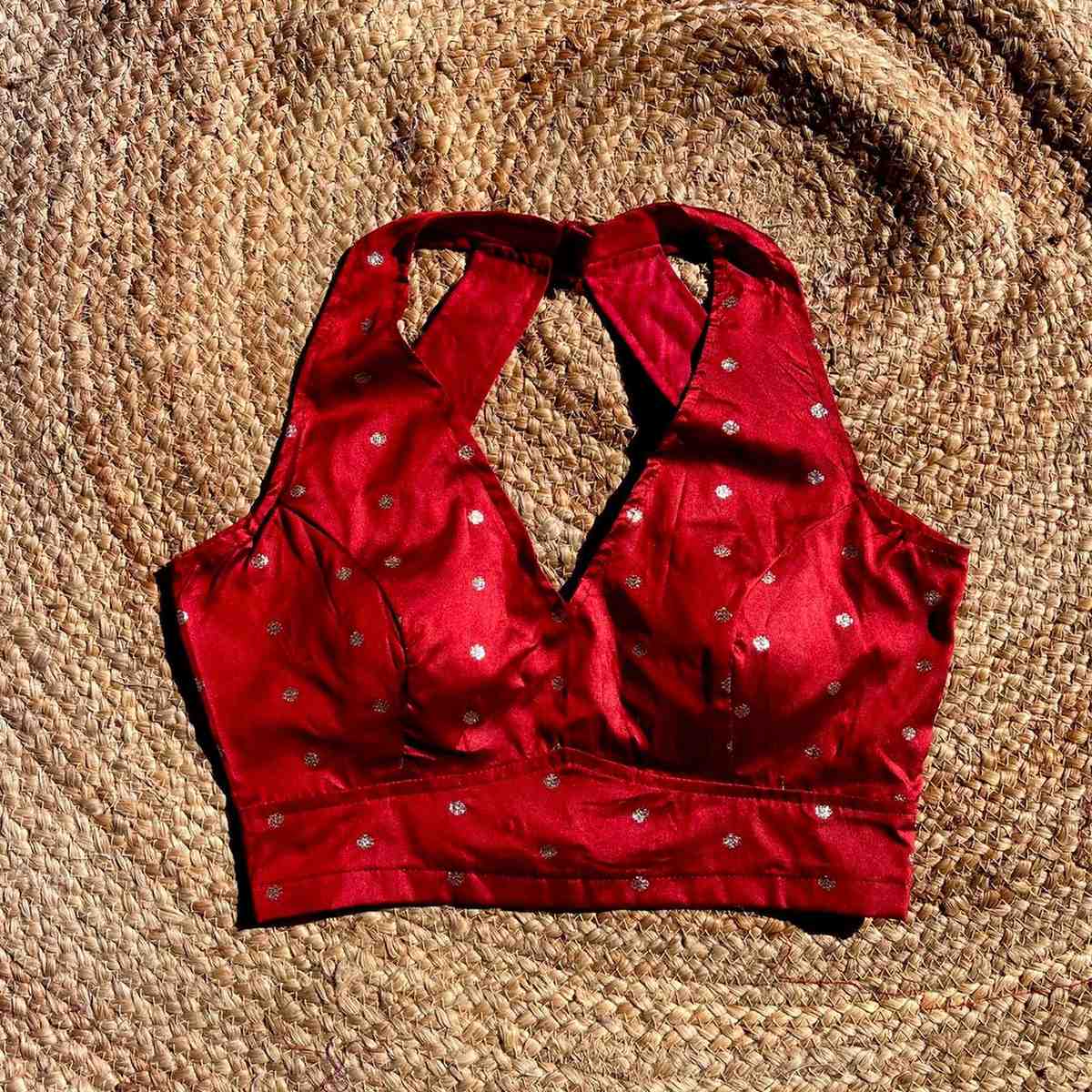 Elevate your festive and party wardrobe with this stunning Red Brocade Cut Sleeves V-Neck Blouse. Designed for weddings, parties, and special occasions, this blouse features rich brocade fabric that adds a luxurious and celebratory charm. The stylish V-neck with a structured high-neck finish creates a bold yet elegant look, making it a standout piece. Versatile in styling, it pairs beautifully with sarees, lehengas, and skirts, and can also be styled with jeans for a modern fusion outfit. Comfortable, flattering, and highly functional, this blouse is perfect for long celebrations.
